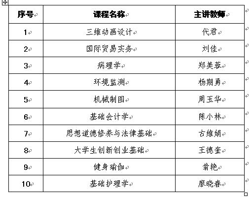 根据学校《关于2016年慕课课程建设立项的通知》,共有13名教师申报2016年慕课课程建设项目。经专家评议,以下10门课程获批立项,现予以公示。
