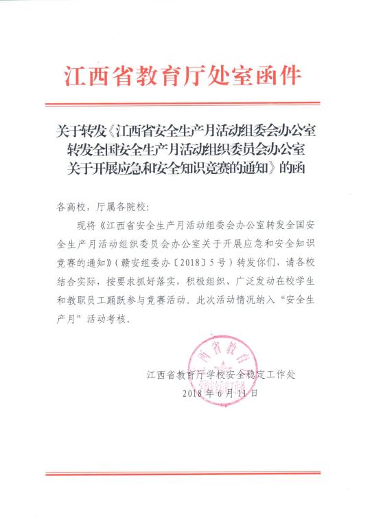 省教育厅“关于开展应急和安全知识竞赛的通知”