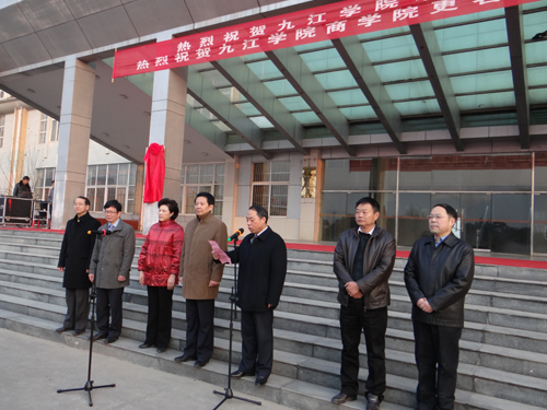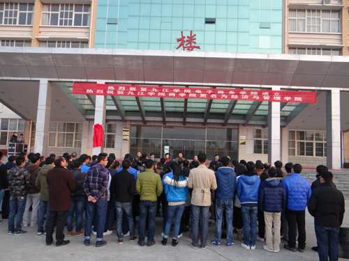 2015年元月4日清晨,迎着新一年的晨光,我校电子商务学院、电子商务产业研究院揭牌暨经济与管理学院授牌仪式在厚德楼广场隆重举行。校党委书记郑翔、校长甘筱青出席仪式并为电子商务学院和电子商务产业研究院揭牌、为经济与管理学院授牌。校领导吴桃娥、纪岗昌、王万山、陶春元、杨焱林出席仪式。揭牌、授牌仪式由副校长陶春元主持。