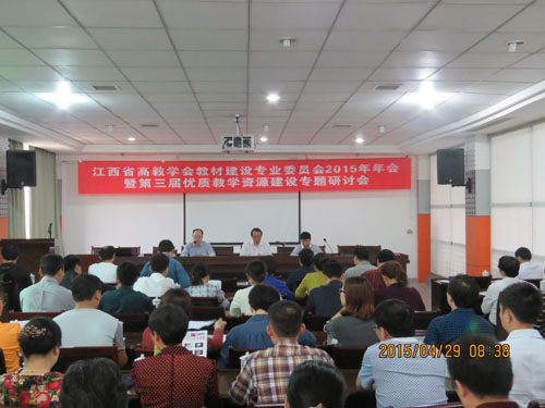 4月29日,江西省高教学会教材建设专业委员会2015年年会暨第三届优质教学资源建设专题研讨会我校濂溪宾馆二楼会议室召开。江西省各高校负责教材管理工作的教务处领导和教材科科长等80余人参加了本次会议。我校副校长陶春元出席大会并致辞。江西省教育厅高教处副处长罗红卫参加了会议。