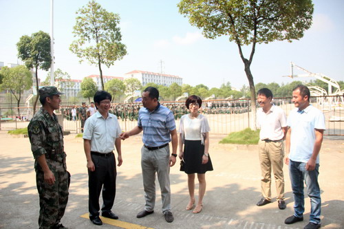 9月8日上午,正在军训现场的检查慰问的王万山副校长、军训旅旅长、付和忠副处长、郭青副处长来到外国语学院军训场地,看望正在军训中的新生,为同学们加油鼓劲。外国语学院领导向王万山副校长汇报了外语新生和军训的有关情况。