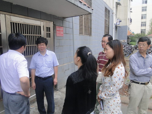 王副校长一行首先来主校区学生宿舍26栋,查看了宿舍外墙漏水情况和门前垃圾袋装化情况。要求宿管中心会同基建处对学生宿舍外墙漏水情况进行一次统计,并尽快做好宿舍外墙防水处理工作。王副校长肯定了宿舍垃圾袋装化取得的成效,同时要求宿舍管理中心做好垃圾桶周围的垃圾清扫工作,保持宿舍的整洁。