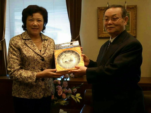 10月12日,吴桃娥副校长一行三人访问了位于日本山梨县甲府市的山梨学院大学(Yamanashi Gakuin University)。山梨学院大学校长古屋忠彦先生接见了代表团一行,并向代表团介绍了山梨学院大学同北京大学、天津南开大学、复旦大学、西安交通大学、南昌大学等学校的交流。吴副校长代表学校向古屋忠彦先生赠送了刻有九江学院校徽的精美瓷盘,向古屋忠彦先生介绍了九江学院的办学历史、区位优势、招生情况、师资力量等相关情况。双方都相信此次合作能够取得建设性的成就。