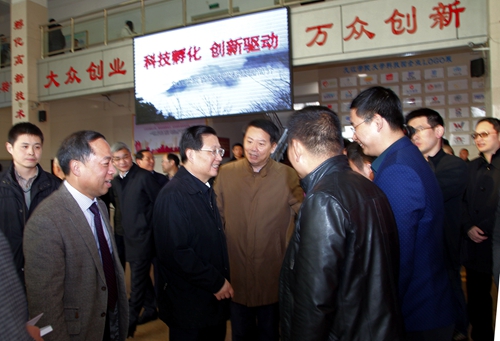 在大学科技园参观时,强卫书记还听取了校党委书记郑翔、校长甘筱青及校友企业负责人对我校科研成果转化的情况介绍,并对我校大学生创新创业取得的成果和三大特色教育表现出了浓厚的兴趣,高度称赞了学校“大学科技园、大学生创新创业园、科技成果孵化机产业园“三位一体模式。强卫书记与大家深入交流,探讨如何充分利用高校人才和知识优势,大力开展创新创业活动,推动经济快速发展。强卫书记指出:九江学院在科技成果创新及转化、大学生创新创业等方面取得了显著的成绩,“十三五”规划的核心就是改革创新,创新升至中国五大发展理念之首。高校是创新创业的重要阵地,无论老师还是学生,他们都是创新创业的重要力量,我们要把教师和学生的创新创业的积极性调动起来,为他们创新创业提供必要的条件,发挥他们的聪明才智,让他们为国家,为社会,为实现中国梦充分发挥自己的才华作出更大的贡献。