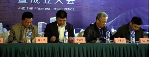 出席大会的领导和嘉宾丁冰洋、罗运峰、陆旭、朱军为九江市教育信息化学会揭牌,丁冰洋主席授牌。