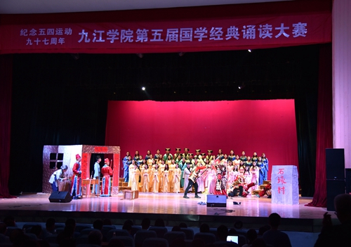 二是把开展纪念“五四”运动97周年系列活动与学校特色教育相结合。(1)开展国学主题教育活动。“五四”前后,学校结合国学教育,共举办了23项大学生国学素养专题教育活动,各班级、团支部开展了“学经典、颂经典、背经典”等主题班会、团日活动,校团委的“行知雅集”紧紧围绕国学和高雅爱好构建多个朋友圈,信息学院、政法学院、外语学院等还组织了学生骨干赴白鹿洞书院开展了“书院寻访”活动。特别是第五届国学诵读比赛,在各基层团组织初赛的基础上,组织了校级复赛、决赛,决赛于5月4日当晚在大礼堂举行。校党委书记郑翔、副校长吴桃娥、王万山、纪岗昌,校纪委书记魏立平等到场观看了整场比赛。各学院将经典国学作品加以形式创新,以表演、朗诵、PPT展示等基本表演手法,配合音乐、情景、舞蹈、光影等当代艺术表现形式,让观众领略国学意境的同时,给人美的享受,更是让现场观众用先贤们的智慧开启梦想,在场的师生深深陶醉于中华经典诗文,濡染于传统文化之中。(2)开展创业实践周活动。今年的五四青年节,不仅邀请了创业达人走进校园与青年学生共话创业,还专门组织开展了“创青春”大学生创业计划竞赛、创业沙龙访谈、创业展示、创业宣讲等主题实践活动。创业协会5月4日当天,组织了学生参加九江市“新工业·创青春”创新创业论坛,聆听大咖创业故事。土建学院、电子学院、电商学院、体育学院、基础医学院、护理学院、临床医学院等通过主题团日活动,创业沙龙等形式,开展创业故事宣讲,吸引了近1000名学生参与。(3)开展25000里徒步长征活动。结合“一二七”计划,利用晨跑活动,各学院开展25000里长征徒步接力活动,营造体育锻炼的好习惯。副校长王万山出席出征仪式,并宣布活动开始。随后,与同学们一起环校园跑。