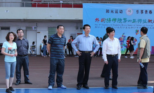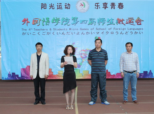 在这花明柳媚、莺吟燕舞的春光里,5月11日下午,外国语学院举行了以“阳光运动,乐享青春”为主题的第四届师生微运会。校党委书记郑翔、副校长王万山在学生处、团委、体育学院负责人的陪同下莅临微运会现场。外国语学院党政领导和师生千余人参加了此次微运会。开幕仪式由外国语学院党委书记杨杰主持。