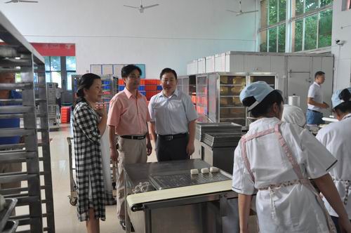 杨副校长一行先后检查了白案配送中心、学生二食堂、三食堂、净菜配送中心、艺术学院新食堂、教工食堂、濂溪宾馆、印刷厂、水泵房、配电室等处。每到一处,杨副校长都会仔细询问了解设备的运行情况、操作章程,以及暑期进行的相关改造情况。各部门负责人分别汇报了所在部门开学的工作准备情况。
