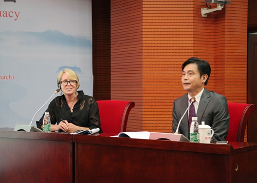 报告会结束后,在校党委书记郑翔,副校长杨耀防的陪同下,与会的中外专家、学者到两南山参观了陶渊明研究院和陈寅恪研究院。