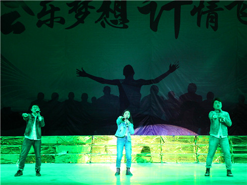 筑梦青春,活力飞扬。啦啦操队员们以一段动感十足的《somebody》表演拉开了晚会的序幕,瞬间点燃了现场激情,他们用律动,谱出了青春向上的梦;声乐组一曲歌曲串烧《我们的歌》将传统与创新完美融合,赢得现场阵阵欢呼与掌声;欧凡剧社精心制作表演的小品《放飞梦想》,以新生军训为题材,用情义真切的表演讲述了一段新生军训时的青春感人故事,引发同学们对亲情和梦想的思考,坚定了同学们发奋学习,执著追梦的信念。