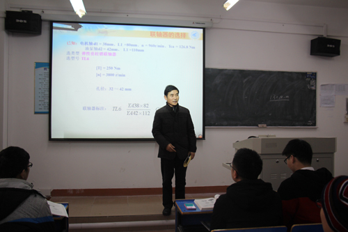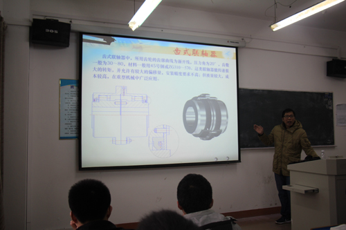 林伟明老师本节课讲解内容为“联轴器和离合器”。他对联轴器的种类和特性以及如何选择联轴器进行了详细的讲解。教学中,林老师讲解思路清晰,重点难点突出,课件制作精美,课堂效果良好。魏书记与同学们一起专注听课,并认真地做着听课笔记。