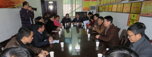 武宁县委常委、农工部长刘斌,武宁县扶贫办主任付周、官莲乡党委书记李刚,东山村村委会干部和返乡创业企业家代表出席座谈会并陪同走访。