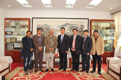 3月23日,尼泊尔中西部大学执行校长吴鹏德(Upendra Kumar Koirala)、副校长马恒德(Mahendra Kumar Malla)、尼泊尔“国际医生”主席田野(Ramesh Kumar Acharya)一行三人来我校交流访问,刘晓东校长在行政楼会客厅热情会见了尼泊尔中西部大学吴鹏德校长一行。参加座谈的有国际合作交流处副处长王贤淼、临床医学院/附属医院院长张志平、国际交流学院副院长何广及国际合作交流处和附属医院的相关人员。