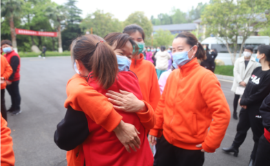 市卫健委党委委员徐端到场为在该处休整的援鄂医疗队护理队队员们举行了简短的欢送仪式,他代表九江市卫健委向全体队员表示了关心和敬意。随后,我们两位队员与在湖北一线共同奋斗几十天的战友一一拥抱道别,跟随医院领导和我院工作人员登车启程返回九江。
