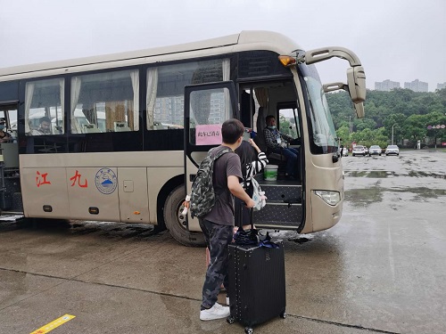 绵绵细雨阻挡不了同学们返校复学报到的热情,从各地返校的同学们或由亲友自驾、或乘坐九江学院学生返校公交专线陆续进入学校西大门复学报到专用通道,根据标识牌,在工作人员的引领下,按照间隔线,保持安全距离,排队安全有序地完成体温检测、个人身份核对、健康码查验、扫码报到登记等复学报到程序。当同学们进入校园后,即可乘坐校车回到宿舍。