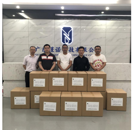 广东瑾诺科技有限公司联合创始人,我校2008届模具设计与制造专业B0528毕业生张路平(右二)、刘顺、黎翔、黄立冬、赖远明,共同向学校捐赠KN95口罩8000个。总经理张路平说瑾诺科技是他与同班同学四人共同创立的,是母校让他们相识相知,创业走到今天,希望这批口罩能对学校防疫工作有所帮助。