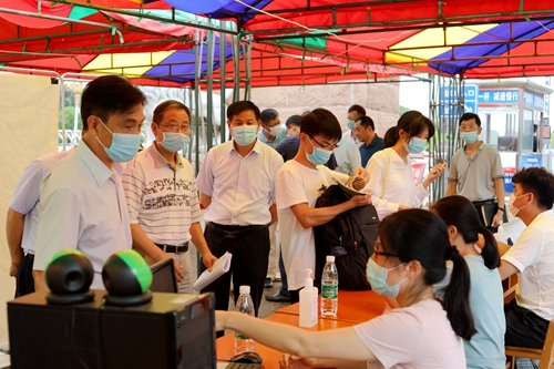在学校西大门和南大门,杨耀防、陈小林亲切慰问了正在为专升本考生进行进校测温、核验身份信息及健康码信息等工作的工作人员,叮嘱他们要严格按照疫情防控要求做好各项检查、核验工作,发现问题及时向学校疫情防控工作领导小组报告。同时要积极、热情为报考同学提供服务,帮助他们顺利完成专升本考试。