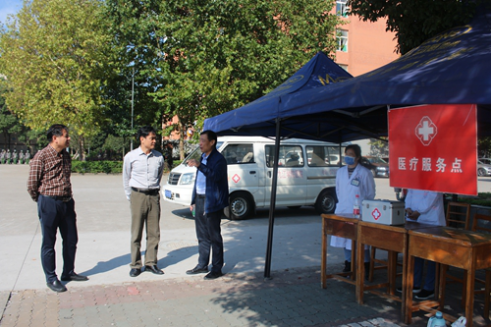 当日上午,杨耀防还在校医院和学生处相关负责人的陪同下,来到军训现场慰问军训保障的医务人员,详细了解军训过程中现场医疗保障、学生应急就诊等情况。