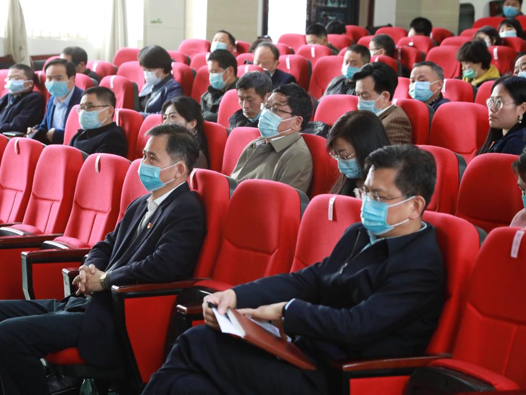校党委书记赵伟、纪委书记李广欣出席,校长刘晓东主持,各二级学院院长、党委书记、主管科研副院长、教研科科长,学校各研究所负责人及部分教师代表聆听了报告。