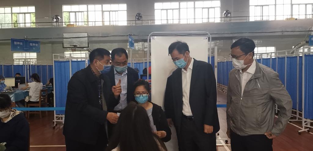 在现场,赵伟和陈小林详细了解学校新冠疫苗接种工作的整体流程,实地查看疫苗接种现场的设备和环境情况,对接种现场有序的管理措施和工作推进情况表示满意,要求既要平稳安全有序地推进疫苗接种,也要确保医务工作者、志愿者和其他工作人员的身心健康。