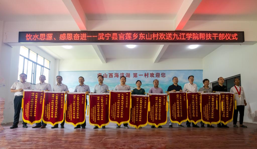 最后,学校原驻村工作队队长燕红波受党委组织部部长王殿元的委托,代表组织部向长期以来关心学校脱贫攻坚工作的武宁县委县政府、官莲乡党委政府,东山村党员干部、全体村民表示衷心的感谢。他说,学校每一名教职员工,甚至学生、校友,都与东山村紧紧相连,已是一家人。尽管六年的帮扶工作即将结束,但是九江学院与东山村仍将续写这份情缘,学校决定继续派人驻村帮扶东山,让这份情缘在乡村振兴的事业中继续前行。最后,他衷心祝愿美丽的东山村更加美丽,富饶的东山村更加富饶,衷心祝愿东山村百姓的生活更加美好,东山村的明天更加灿烂。