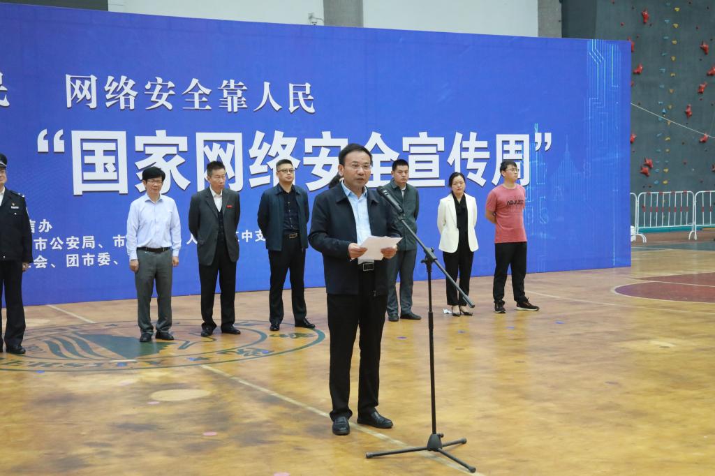 10月11日至10月17日,是我国第八个网络安全宣传周。为进一步增强全市网民的网络安全意识,营造网络安全人人有责、人人参与的良好氛围,10月11日上午9:30,九江市第八届“国家网络安全宣传周”启动仪式在我校北区田径馆举行。我校副校长王万山出席仪式并致辞,市委网信中心副主任尹仁平主持启动仪式。我校党委委员、宣传部长冯健,市委宣传部互联网信息办专职副主任欧阳小竹,九江市公安局、教育局、国安局二级调研员夏卫、工信局、总工会、团市委、妇联、人行九江中心支行、文广新旅局、九江新闻网等有关单位相关负责人和代表300人参加了启动仪式。