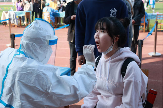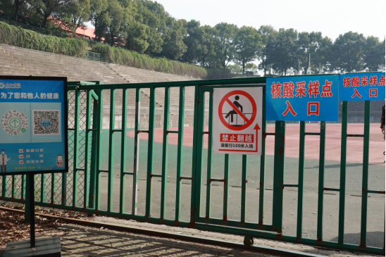 检测时,参检师生带好口罩,按照预先安排顺序,错峰进入运动场,每10人一组,扫码登记,在30个采集点检测采样,然后快速撤离采样区,整个过程井然有序。