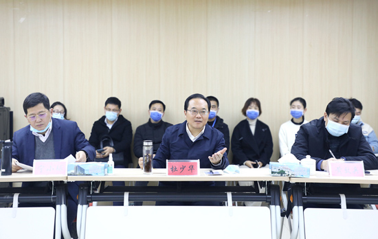 杜少华一行实地查看了医院预检分诊、核酸检测点、发热门诊等重点防控区域,每到一处都与工作人员亲切交谈,详细询问工作情况和遇到的困难,了解预检分诊流程、发热病人处置流程、陪护探视制度落实等情况。座谈会上,杜少华认真听取了医院负责人关于医院基本情况、疫情防控工作和下一步发展规划的工作汇报。他对附属医院疫情防控措施工作落实情况给予了充分肯定,并强调,要提高思想认识紧抓疫情防控常态化工作,时刻绷紧疫情防控安全弦,把各项措施抓实抓细抓到位;要优化流程、完善预案,严格做好闭环管理,坚决防止“院感事件”发生;要进行全员再教育、再培训,确保人人知晓、人人掌握;要配足配齐配强防控人员,明确岗位职责;切实发挥好“哨点”作用,持续巩固疫情防控成效,切实保障人民生命健康安全。