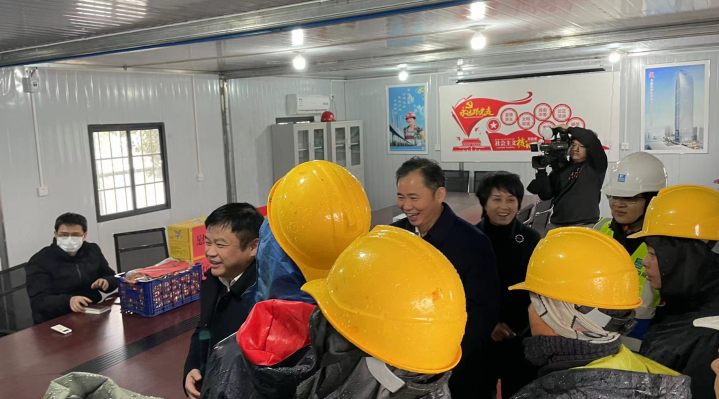 去年农历腊月廿七,九江市人民政府副市长容长贵和九江学院党委书记赵伟来到工地,亲切看望慰问了坚守岗位的一线工作人员,详细询问了人员值班值守情况、应急处置流程、春节期间后勤保障措施,勉励大家继续保持良好的精神状态,做好疫情防控工作,压实责任,严格值守,确保项目大局的和谐稳定。市校领导的关怀让大家感受到家的温暖,大家表示一定会安心工作,加速推进项目建设。