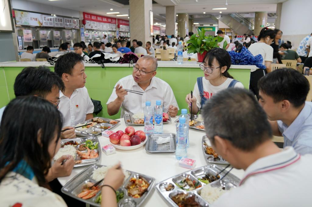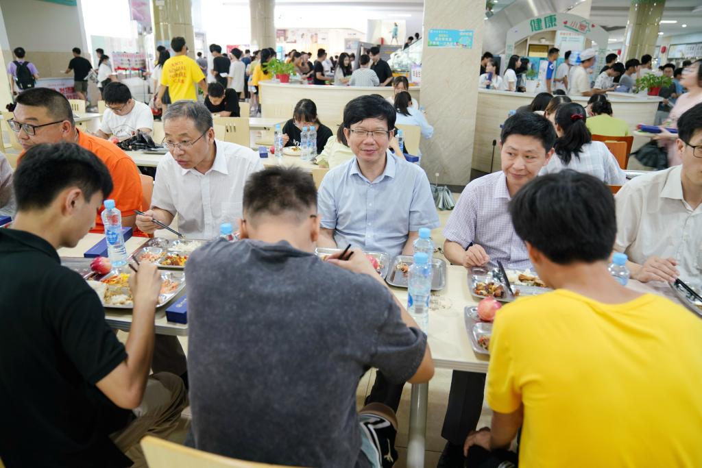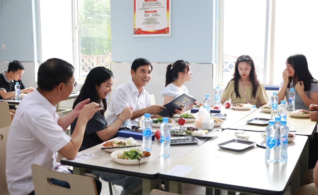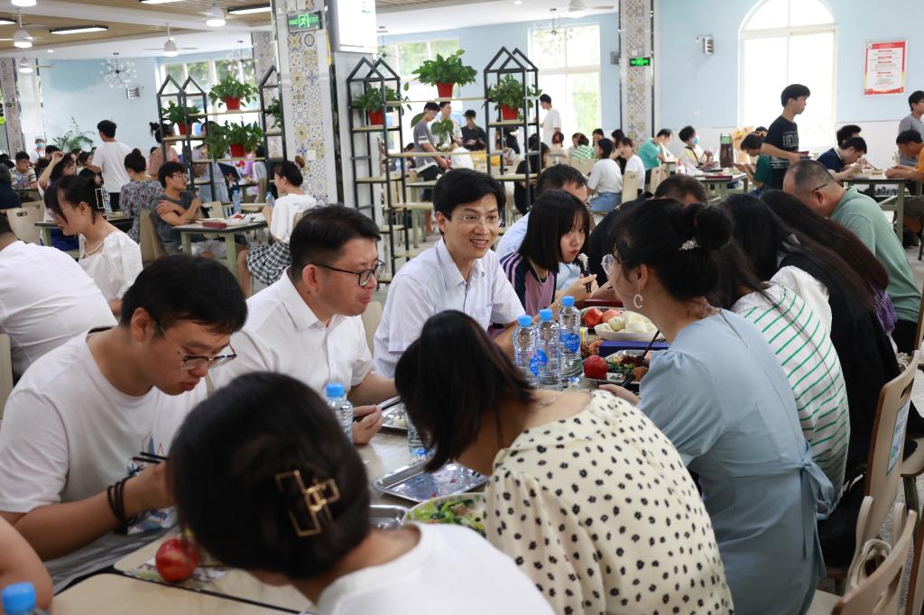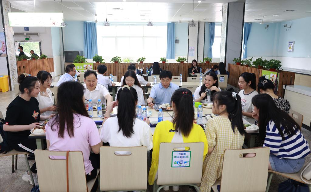 毕业典礼结束后,学校在主校区一食堂和三食堂、浔东校区食堂准备了定制午餐和毕业礼物,为2022届全体毕业生送别,让毕业学子再一次感受九院味道。赵伟、陈小林等校院领导分别来到学生三食堂和一食堂,与同学们共进午餐,一起回忆大学时光,畅想美好未来。