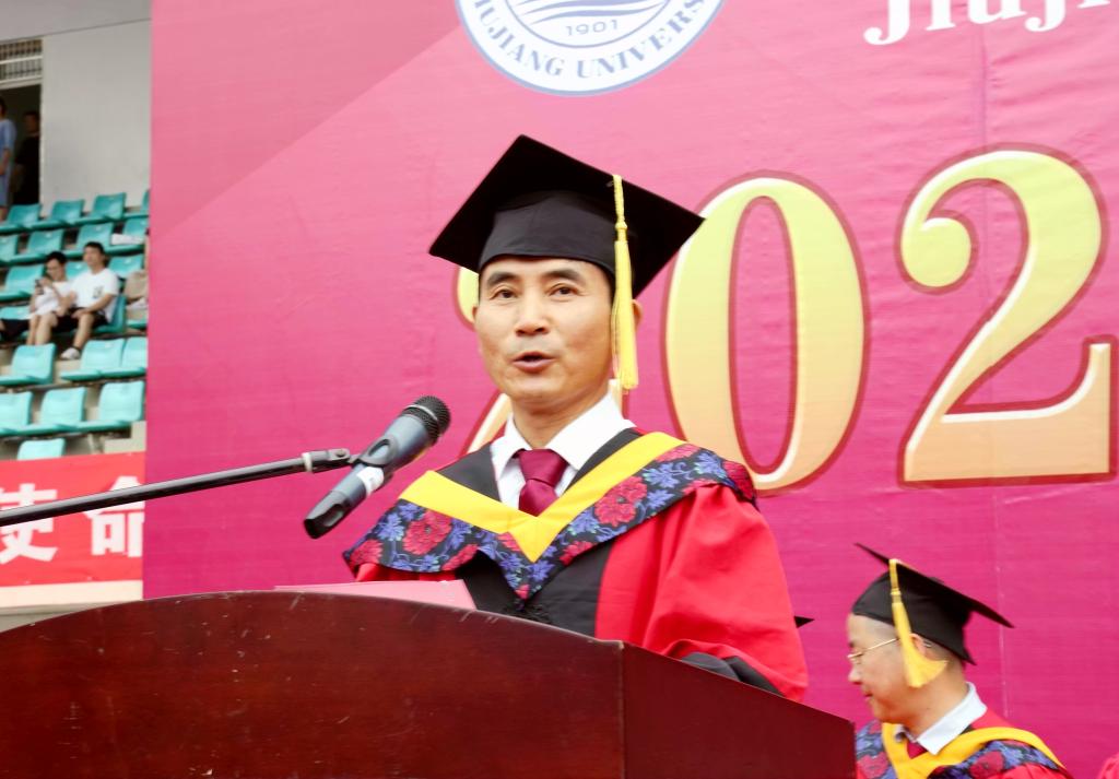 “作为九院的一名教师,在此我想向各位同学提三点建议,并与各位同学共勉:一是愿你们做一位身心健康的人;二是愿你们做一位爱学习﹑爱国家的人;三是愿你们做一位具有高尚品德的的人。今天,天空作美,送大家一场及时雨,愿它能洗去各位学子以往所有的烦恼,雨后带给大家一生的好运。也愿各位同学做一位身心健康,爱学习,爱国家,一个堂堂正正的中国人。”教师代表、药生学院副院长张化浩博士用心声勉励毕业生不忘初心,砥砺前行。