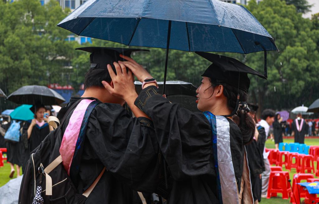盛夏清和,芳草依依。6月28日上午8时许,我校在主校区南区田径场隆重举行2022届毕业生毕业典礼暨学位授予仪式。9060名毕业生在学校、师长和同学的见证下,在雨中依依挥别母校,带着母校和师长的嘱托和祝福踏上人生新征程。