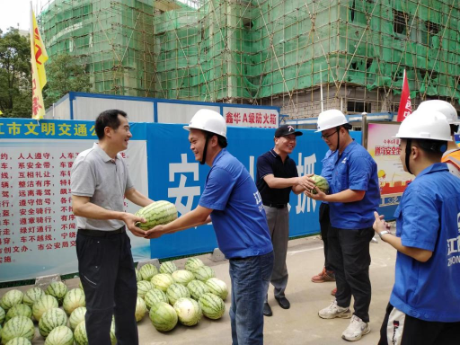 “施工情况怎么样?要注意做好防暑和降温,把健康和安全施工放在第一位。”校领导对校园的建设者在高温下的坚守和辛勤付出表示了感谢,为他们送来解暑西瓜和药品,并叮嘱他们在高温酷暑期间,一定要注意做好自身安全防护和防暑降温工作,劳逸结合。7月24日,副校长、校园修编建设指挥部指挥长严平,统战部部长、校园修编建设指挥部常务副指挥长刘遵海深入丹枫园校区各个建设项目施工现场,慰问高温天气坚守在一线的参建人员。