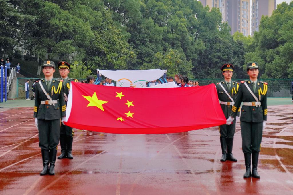 上午8时整,伴随着昂扬振奋的乐曲,我校第二十一届运动会进场仪式正式开始。国旗、校徽、运动会会旗和会徽在仪仗队护卫下率先入场,他们精神饱满、步履铿锵、气宇昂扬,充分展现了我校学子积极向上的精神风貌。