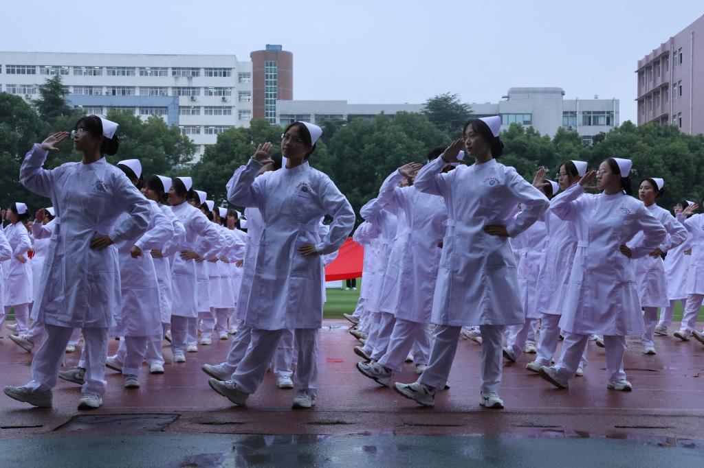 紧接着,鲜花队、彩旗队、裁判员方队和来自各个学院和学校教职工的22个运动员方阵也踏着矫健的步伐依次入场。击鼓表演、汉服舞蹈、纸牌拼字……运动会方阵入场精彩纷呈,各二级学院纷纷结合各自的学院和专业特色,用别出心栽的表演向党的二十大献礼。时尚新潮的音乐、青春曼妙的舞姿、铿锵响亮的口号,让人感受到了青春的活力、创造的激情;昂扬饱满的状态、勃发的英姿和别出心裁的方阵秀让现场的气氛瞬间热烈起来,掌声、欢呼声响彻云霄。