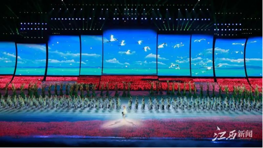 “现场真的很震撼!多媒体技术和声光电手段的结合,展示出了我们江西壮丽的山河画卷、人文风情以及赣鄱儿女传承红色基因的昂扬精神风貌!”看台上的法学院A2012班黄剑珍激动地说。