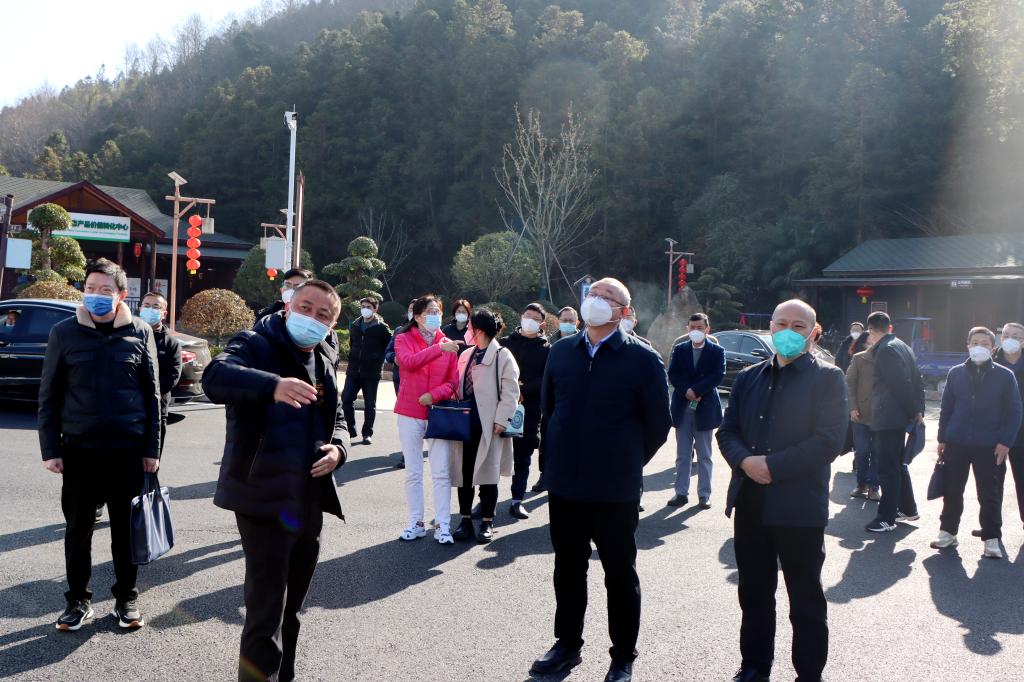 陈小林一行首先来到武宁县鲁溪镇双新村,参观了双新村生态产品价值转化中心、农产品销售直播间、农产品加工厂和茶博园等,详细了解双新村特色农产品的生产、加工和销售情况及农户的就业和增收情况。