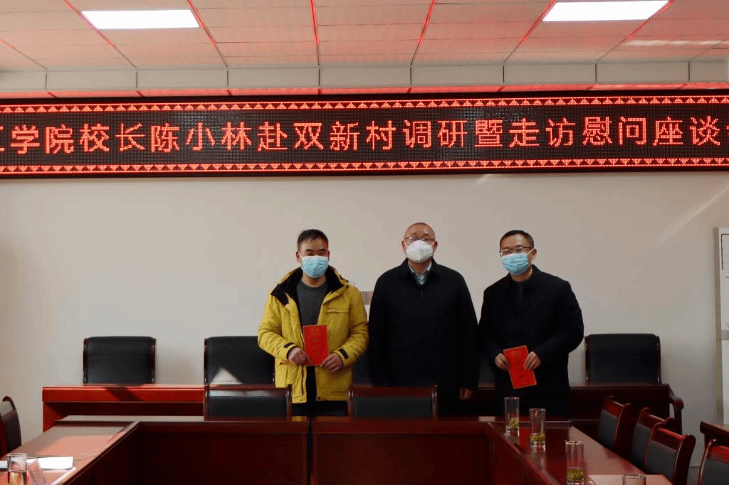 陈小林代表学校慰问了我校两位驻村工作队员,向双新村捐赠了乡村振兴帮扶款。