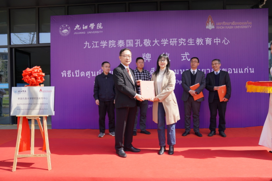 4月7日上午,九江学院泰国孔敬大学研究生教育中心揭牌仪式在我校紫薇园举行,泰国孔敬大学代表团,校长陈小林,学校相关部门和二级学院负责人及部分师生代表参加了此次揭牌仪式,仪式由王万山主持。