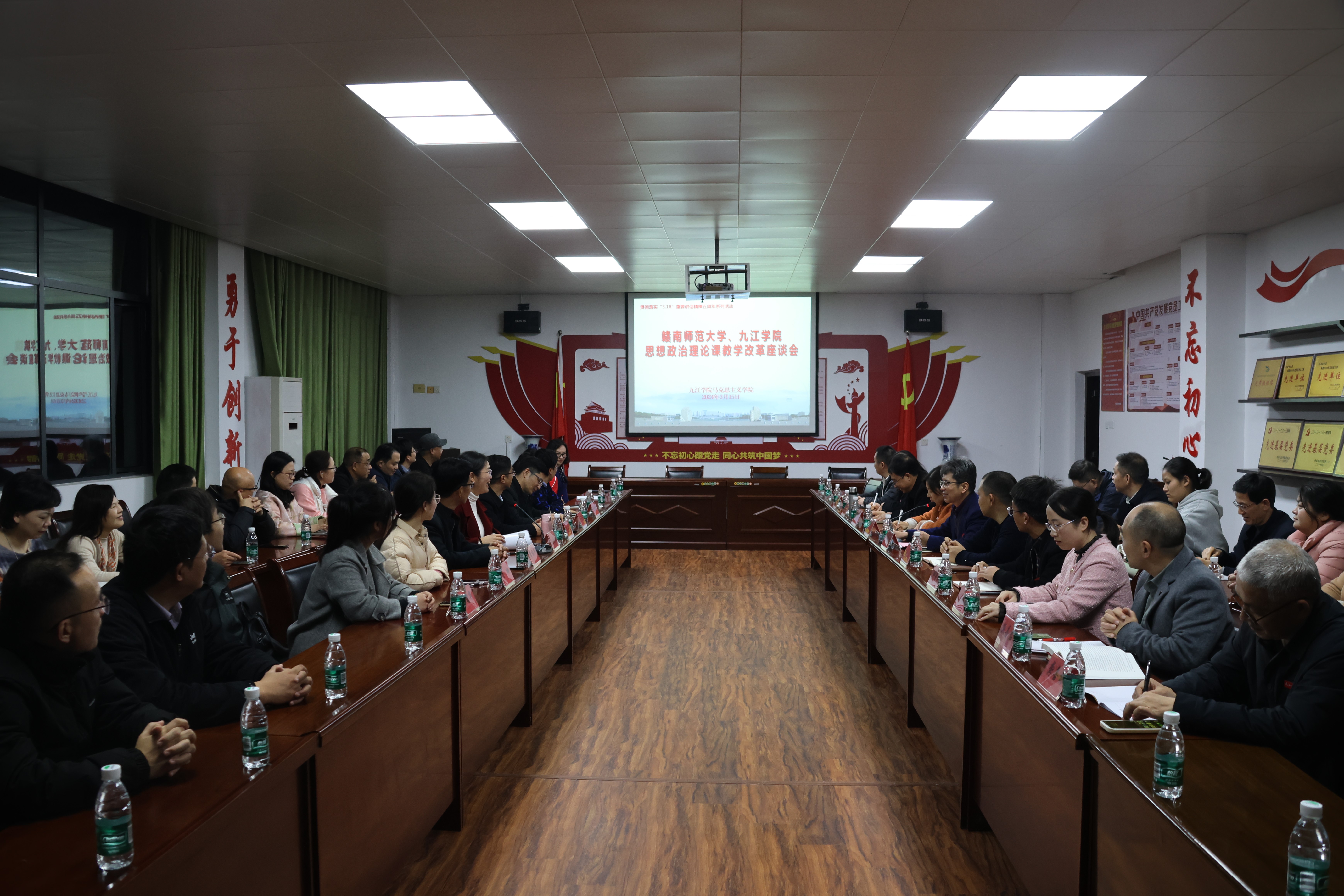 “作为一名高校思政课教师,我认为思政课程不仅是一门课,更是一种使命,一种育人的艺术。”3月15日,在纪念习近平总书记“3•18”重要讲话精神五周年之际,九江学院马克思主义学院连续举办了两场活动,学校“教书育人楷模”、思政课专职教师谢伏华博士在下午召开的思政课教科研经验分享会上分享了作为一线思政课教师的体会。当晚,学院还与赣南师范大学马克思主义学院联合召开了思政课改革创新座谈会,就思政课建设等关键问题进行了深入的交流与探讨。