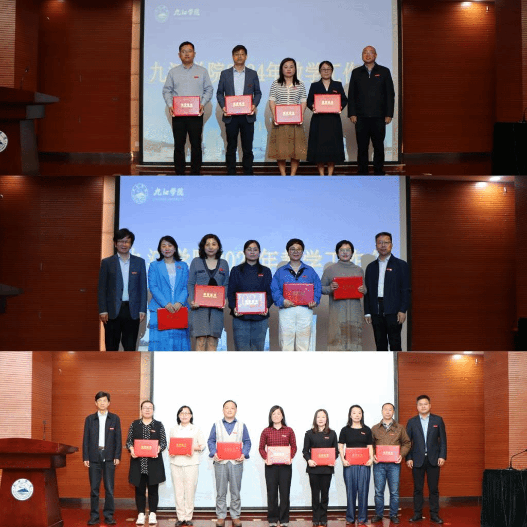 李松志宣读了《关于九江学院第四届教师教学创新大赛获奖情况的通报》,与会校领导为获奖教师颁发了荣誉证书,胡云堂和尹宁宁代表获奖教师作了发言。