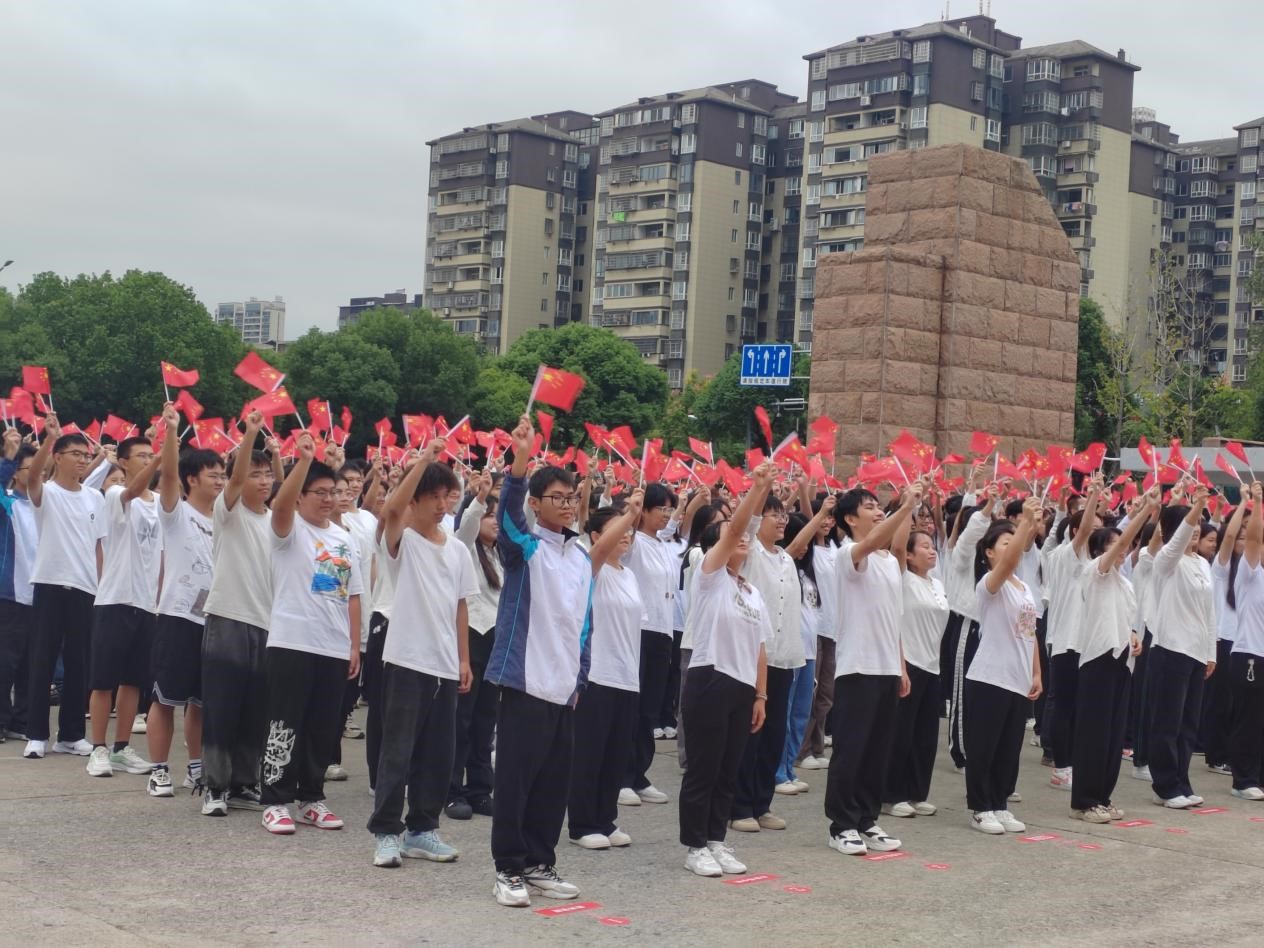 8时整,参加升旗仪式的师生代表们在升旗台前整齐列队,仪式正式开始。国旗班队员们身姿挺拔俊逸,步伐铿锵有力,护送国旗入场。“升国旗,奏唱国歌!”随着一声号令,升旗手郑重而有力地将国旗抛向天空。伴随着《义勇军进行曲》雄壮的旋律,五星红旗在晨曦中缓缓升起、迎风飘扬,全场肃然静立,深情仰望国旗,齐唱国歌,爱国情怀在每位师生心中升腾。