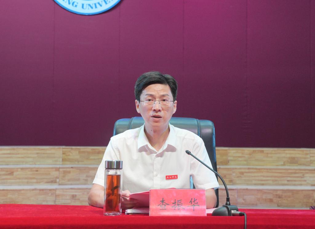 查振华在主持会议时指出,要以“铸魂强师”为根本,筑牢高质量教师队伍“压舱石”;要以“提质创新”为核心,激活学校高质量发展“新引擎”;要以“担当贡献”为导向,打造服务地方高质量发展“主力军”。他强调,全校广大干部教师要以此次表彰大会为新起点,以受表彰的先进典型为榜样,牢记嘱托、砥砺前行,以更加昂扬的斗志、更加扎实的作风、更加优异的成绩,共同谱写特色鲜明高水平应用型大学建设新篇章,为教育强国建设贡献九江学院力量!