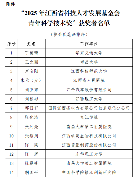 “江西省科技人才发展基金会青年科学技术奖”于2021年6月设立,每两年评选一次,每届获奖人数不超过20名。此奖项旨在表彰为江西省经济发展、社会进步和科技创新做出突出贡献的青年科技工作者,是我省青年科技人才领域的重要奖项。