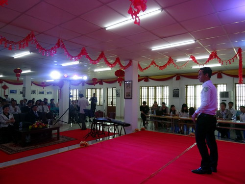 1月25日,“大使杯”中文歌曲比赛决赛在柬埔寨王家研究院孔子学院中国文化之家汉语中心举行。中国驻柬埔寨特命全权大使布建国阁下、柬埔寨教育青年与体育部副国务秘书刘秋耀(LAV CHHIV EAV)阁下、孔子学院院长谢莫尼勒(CHEA MUNYRITH)阁下、中方院长帅式毅先生及金边王家大学领导等约200余名嘉宾应邀出席本次“大使杯”中文歌曲比赛的决赛。本次活动由中华人民共和国驻柬埔寨大使馆主办,旨在促进中柬两国的文化交流、宣传及展示柬埔寨汉语国际推广工作取得的成绩。