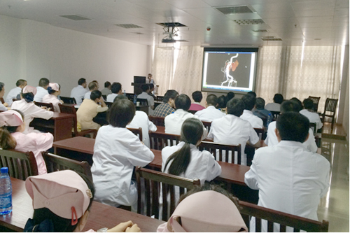 这次活动除义诊外,临床医学院/附属医院心血管内科黄问银主任、骨三科朱述浪主任还特别针对心血管疾病的介入治疗和骨质疏松治疗以PPT的形式,对彭泽县人民医院临床医护人员进行了详细的授课讲解。