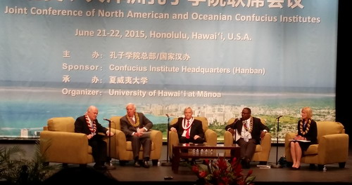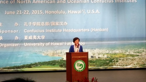 为交流孔子学院办学经验,进一步提高办学质量和水平,促进孔子学院可持续发展,根据孔子学院总部安排,萨凡纳州立大学孔子学院中外方院长应邀参加了6月21-22日召开的“2015北美、大洋洲孔子学院联席会议”. 孔子学院总部总干事许琳女士,副总干事王永利先生;中国驻洛杉矶总领馆总领事刘健先生,教育组参赞袁东先生;孔子学院总部美大处的领导;部分大学校长及美国、加拿大、澳大利亚、新西兰、斐济孔子学院中外方院长约300人参加了此次会议。