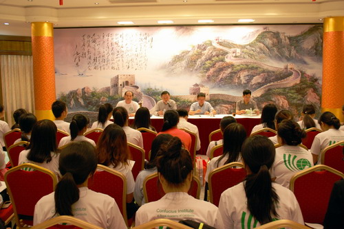 檀勍生代办等在使馆多功能厅会见汉语教师志愿者