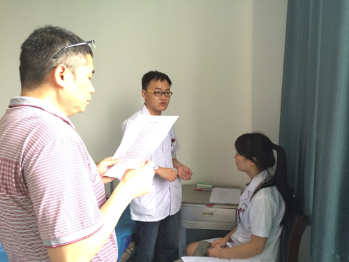本次考核内容包括一般情况及头颈部体格检查,前侧胸肺部检查,神经系统检查等。考核时,医务科组织工作人员、考生、临床医学院学生担任“模特”,最大程度模拟真实情景。考生们态度认真,纷纷表示要抓住难得的“培训”机会,虚心接受院内专家对自己操作的指点和纠正,提高业务水平。考官们谆谆教诲,严格把关“年轻一代”的“三基”技能操作。