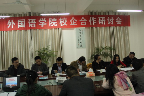 为进一步加强校企合作,拓宽学生就业渠道,11月20日晚,外国语学院邀请了近11家企业于香远楼219会议室召开了校企合作研讨会,外国语学院党委书记杨杰、副院长柴克清、教务科科长王伟、学生科副科长吴章义、日语教研室主任王淑沅、商务英语教研室涂丽亚老师出席了会议。